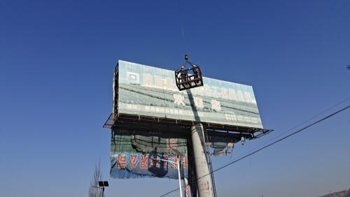 2024年1月11日,府谷公路段路产保护人员巡查沿黄路至K22+605M黄甫川工业园处,发现路边大型钢立柱广告牌,书“陕西奥维乾元化工有限公司”,其广告布大面积脱落,对公路行车安全造成威胁。段领导第一时间与奥维乾元化工有限公司负责人取得联系,并赴该单位开展座谈,详述现场情况与威胁因素。后与负责人达成一致意见,该单位承诺即刻行动,自行组织人员拆除广告布。
