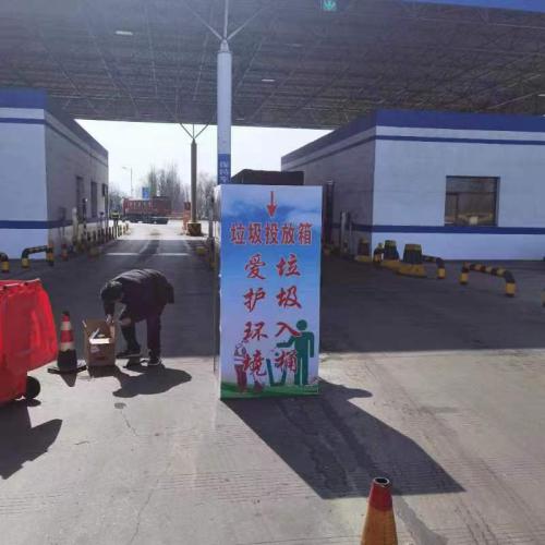 二是在检测站区设置垃圾投放指示标志,引导卸货场地的司乘人员投放垃圾,同时在站区动态检测车道边上设置两处垃圾投掷桶,检测人员每天通过扩音器语音播放、散发传单等方式进行引导过往车辆驾驶员投放垃圾,同时告诉司乘人员,不要在路上随意扔垃圾,“做文明人,办文明事,开文明车”,保护环境是每一位公民的责任。