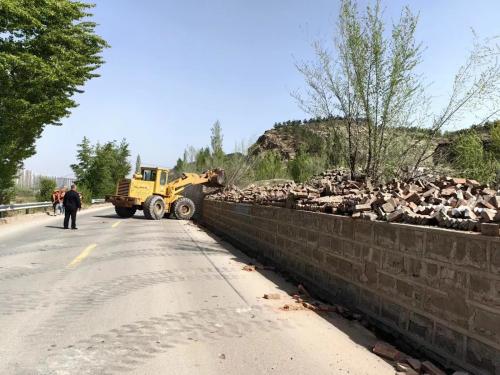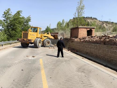 近日,神木公路段路政中队对神木市泥河村一处存在安全隐患的违章建筑依法拆除。此处违章建筑是当地石料厂未办理任何审批私自搭建的砖墙,该砖墙长150米,紧邻公路临时搭建,不仅影响行车安全视距,且修建围墙不规范存在严重的安全隐患。该段路政人员多次向当事人进行安全教育并讲解相关的法律法规,告知当事人紧邻公路搭建建筑物是违法行为且影响自身及他人的生命财产安全。经过耐心宣传教育,当事人同意拆除违章建筑。4月26日上午,该段路政中队雇佣铲车拆除违章建筑,确保公路整洁安畅。