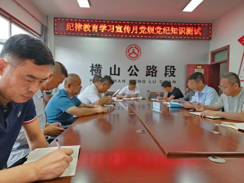 近日,横山公路段党支部围绕“学党章、悟思想,强党性、善作为”主题,扎实开展纪律教育学习宣传月活动,增强党员干部职工纪律约束力和制度执行力。