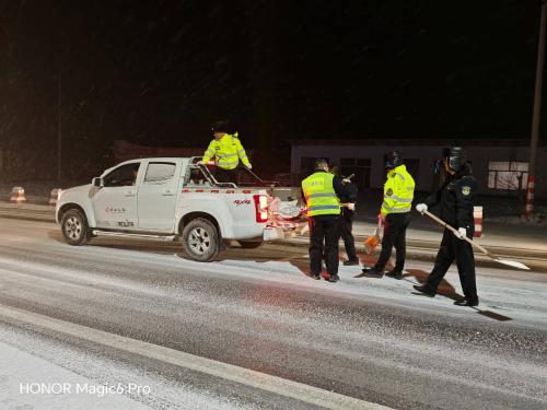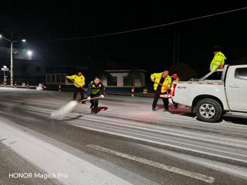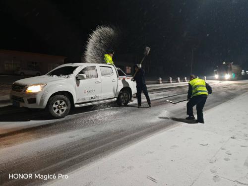针对本次降雪,大家利用铁锹集中对检测车道、检测场地以及检测站公路沿线重点部位进行撒布融雪剂,及时清理路面积雪,全力保障站区安全畅通。截至21时,共出动除雪保畅人员7人次,皮卡车辆1台,撒布融雪剂10余袋。辖区道路积雪已基本清除,道路通行正常。