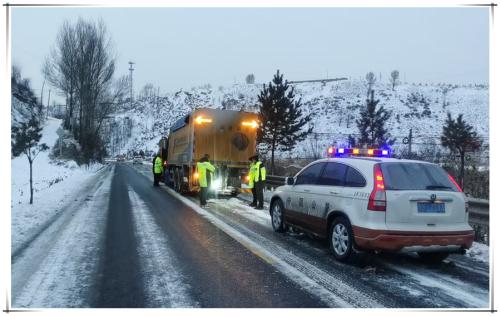 我段采用“机械为主,人工为辅”的方式对辖养国省干线路面积雪进行清除,组织人员、机械全部上路开展除雪保畅工作,在急弯陡坡、长大下坡、桥面等易结冰路段撒布融雪剂、防滑料,确保道路畅通。同时,为保证来往司乘人员的身心健康,我段为其提供热水、方便面等应急物资,也提醒雪天出行的驾驶人控制车速、保持安全距离。