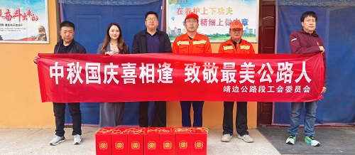 2025年“中秋节”将至,靖边公路段党政工领导携段属职能股室负责人看望慰问一线养护职工。看望慰问期间,给职工送上了过节食品,送去了组织的温暖和关怀。当前,靖边公路段劳动竞赛活动深入开展,一线职工立足具体工作实际,采取有力、有效的工作措施,路况质量和干线公路服务水平明显提升,为胜利完成全年工作奠定了坚实的基础。