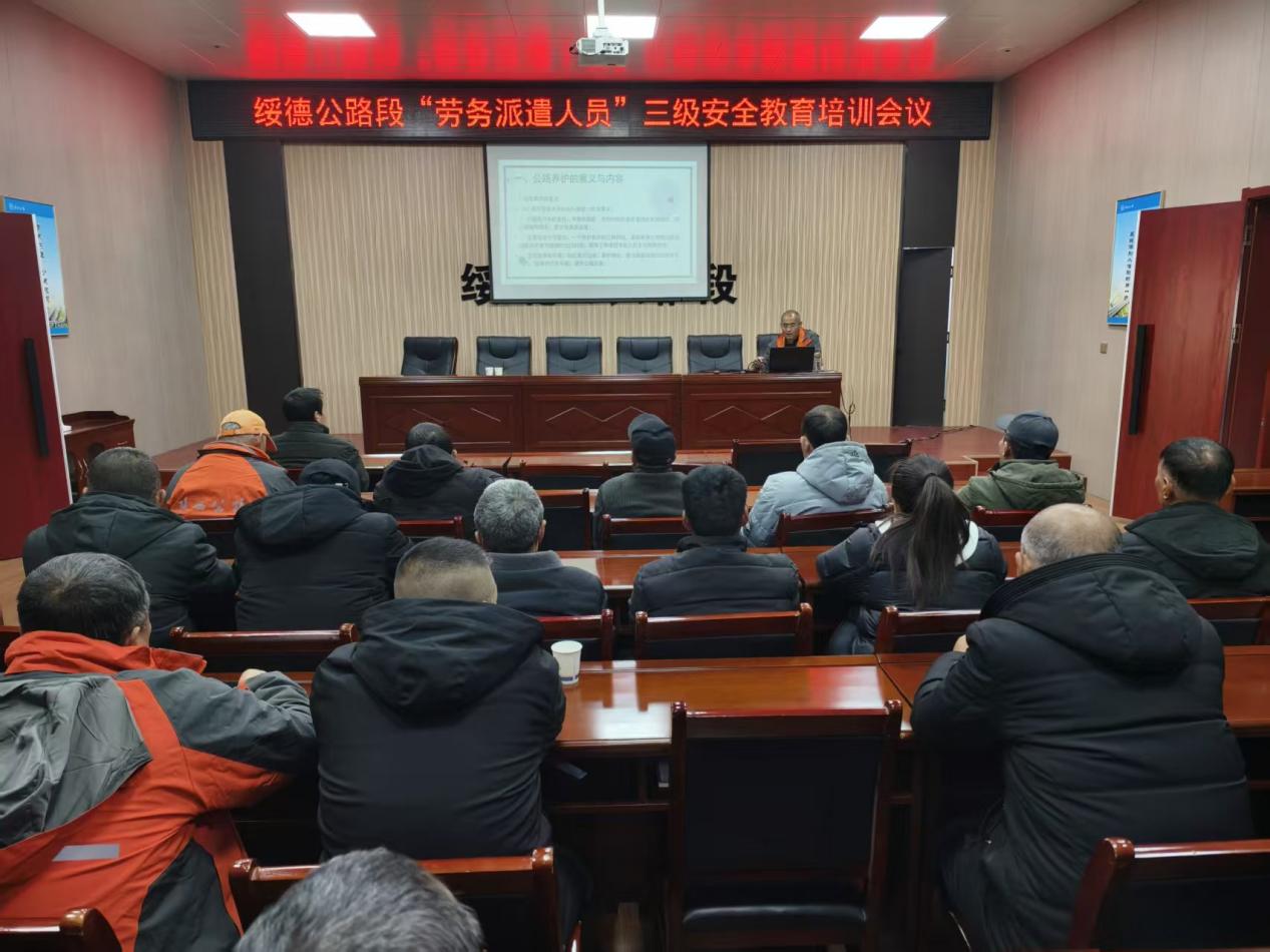 为切实强化劳务派遣人员安全防护意识,规范公路养护作业行为,近日,绥德公路段精心组织开展劳务派遣人员三级安全教育培训,覆盖公路安全养护、标志服规范穿戴、临水临崖区域作业安全帽佩戴等核心内容,全体劳务派遣人员参训。