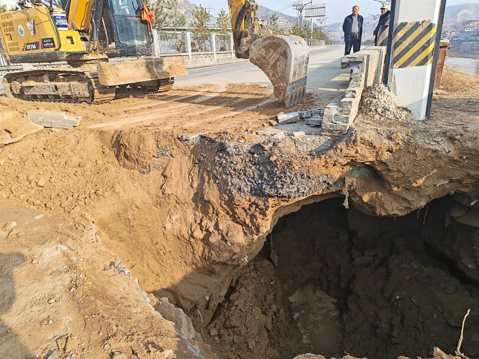 险情发生后,我段第一时间启动应急预案,迅速调度路保、生产等相关人员赶赴现场,同步联动自来水公司、县公安局交通管理大队辖区中队开展应急处置。各单位抵达现场后,快速会商制定抢修及交通疏导方案,形成处置合力。