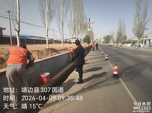 在这草长莺飞、春风和煦的美好时节里,靖边公路段紧紧抓住春天特有的机会,从补植新疆杨、粉刷路侧设施、整合道路标志规范化管理和划设纵向减速标线等工作措施为抓手,奋力追赶超越,加快路域环境整治工作步伐。一是补植新疆杨500余棵,同步粉刷了防止牲畜啃食的涂料,做到美观、整齐、划一。二是粉刷路侧绿化平台3公里。对新建的绿化平台外围采用灰色打底,黄色刷边的办法,粉刷新建砖围栏,提升了路侧整治成果,得到了路边住户和人民群众的一致好评。三是整合道路标志,推进规范管理。一段时间以来,个别商户利用公路标志标牌做宣传,出现了乱贴、乱画等问题,严重削弱了公路标志标牌的功能作用,为此,靖边公路段对县城至东坑段的公路标志标牌、道口桩、里程碑等公路附属设施进行了整合,投入5万多元对破旧、破损标志标牌进行更换,组织40余人次对路边500多平方米野广告进行覆盖,对非公路标志标牌进行拆除。四是划设7处纵向减速标线。为了坚决遏制道路安全事故的发生,靖边公路段在307国道东线、106省道天赐湾段7处急弯划设“鱼骨线”,进一步完善道路标线的设置,对遏制道路交通安全事故起到了很好警示的作用。